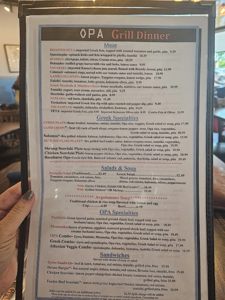 The atmosphere at Opa Grill is both lively and inviting, buzzing with laughter and conversation, ideal for family gatherings or intimate dinners. Patrons describe the environment as a “good loud,” where the cheer of large families enjoying their meals mingles with the light-hearted banter of the friendly staff. The restaurant's decor blends warmth and culture, making you feel as if you've been transported to a quaint taverna in Greece.